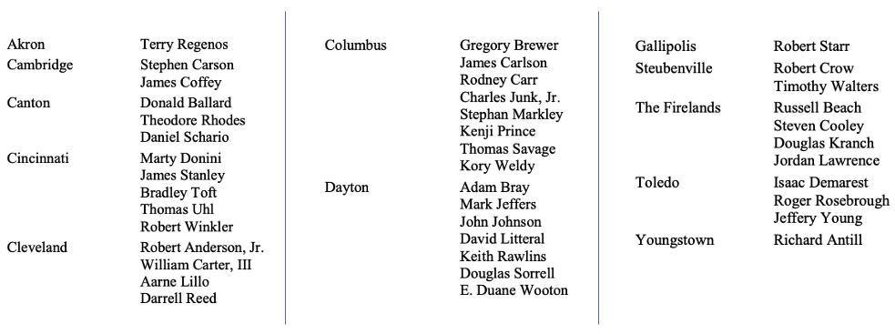 The Ohio Council of Deliberation is pleased to announce those Ohio Scottish Rite Masons elected to receive the 33rd Degree at the 211th meeting of the Supreme Council, 33°! The meeting will be held in Louisville, Kentucky in August 2023. Please join us in congratulating these Brethren!